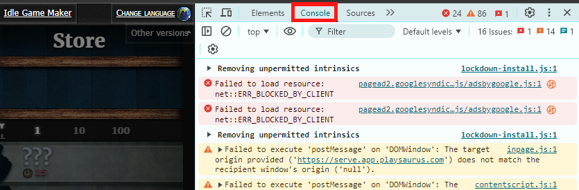 - Follow steps 1-3 above to open the Developer Tools and access the Console.