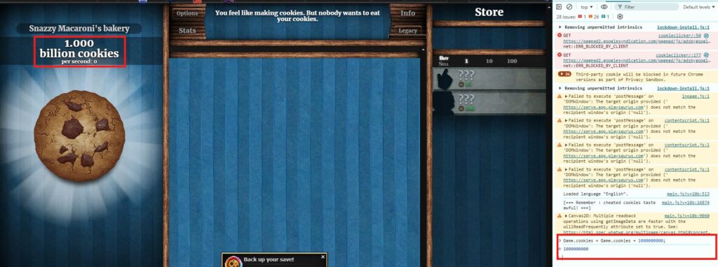 - Press Enter. You will immediately see your cookie count increase by 1 billion.