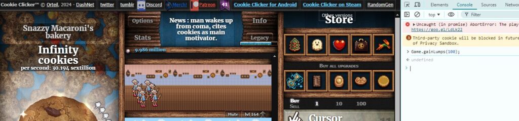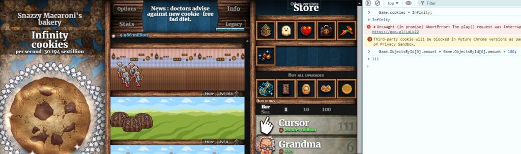 Here’s a list of cookie clicker hack along with step-by-step instructions. These are simple browser-based hacks and do not require any special tools. Note that these hacks are for educational purposes and can break the intended gameplay experience.